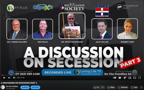 Join Dr. Corne Mulder (FF Plus), Jack Miller (Cape Independence Party), Robert King (Referendum Party), Des Palm (CapeXit)
